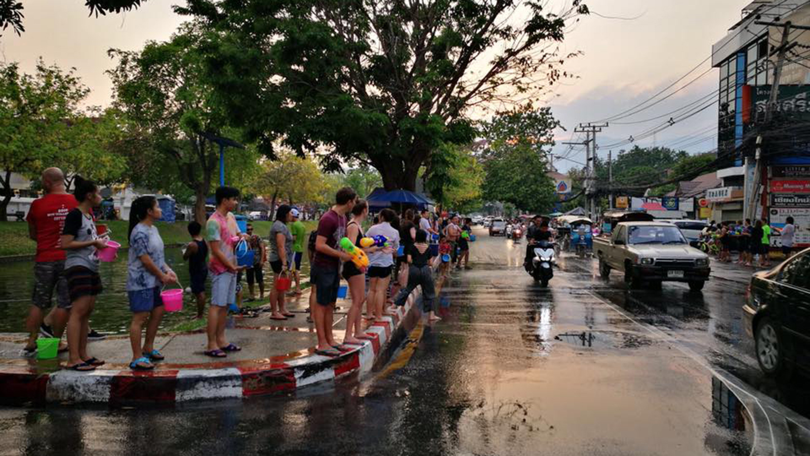 🤗🤗🤗😁บรรยากาศการเล่นสาดน้ำสงกรานต์ของจังหวัดเชียงใหม่ได้เริ่มขึ้นแล้ว ตั้งแต่ช่วงบ่าย 12/4/60 นักท่องเที่ยวชาวต่างประเทศเริ่มคึกครื้นและครื้นเครงไปกับการสาดน้ำทั้งคนและยวดยานที่ผ่านไปมาริมถนนรอบคูเมือง หลังประตูท่าแพ อ.เมืองเชียงใหม่ 😀ขณะเดียวกันการเลือกซื้ออุปกรณ์การเล่นสงกรานต์โดยเฉพาะปืนฉีดน้ำก็ได้รับความนิยม เช่นเดียวกับร้านจำหน่ายอาหารและเครื่องอุปโภคบริโภคก็มีลูกค้าเข้าอุดหนุนสินค้าอย่างอุ่นหนาฝาคั่ง ส่งผลให้เกิดเม็ดเงินสะพัดในจังหวัดเชียงใหม่เป็นจำนวนมาก และยังคงมีนักท่องเที่ยว ตลอดทั้งยังคงมีชาวเชียงใหม่และนักท่องเที่ยวเดินทางเข้ามาเล่นน้ำสงกรานต์อย่างต่อเนื่องอีกด้วย… และช่วงเวลาเช้านี้ 13/14/60 ประชาชนชาวเชียงใหม่ทุกภาคส่วนร่วมในพิธีทำบุญตักบาตรถวายแด่พระเทพปริยัติ เจ้าคณะจังหวัดเชียงใหม่และคณะสงฆ์สามเณร 90 รูปเพื่อความเป็นสิริมงคล ในโอกาสเทศกาลป๋าเวณี ปี๋ใหม่เมืองเชียงใหม่ ปี พ.ศ.2560 หรือ 721 ปีเวียงเจียงใหม่ โดยมีนายปวิณ ชำนิประศาสน์ ผู้ว่าราชการจังหวัดเชียงใหม่ พร้อมด้วยนางมลสุดา ชำนิประศาสน์ นายกเหล่ากาชาดจังหวัดเชียงใหม่ ท่ามกลางหัวหน้าส่วนราชการ คหบดี ผู้นำชุมชน ครูอาจารย์ ตลอดทั้งนักท่องเที่ยวและเหล่าสื่อมวลชนจำนวนมากถ่ายทอดบรรยากาศสดสู่ประชาชนทั่วประเทศ และได้ร่วมฟังการเจริญพระพุทธมนต์และตักบาตรอันเป็นประเพณีล้านนาที่สืบทอดจากบรรพบุรุษล้านนา ยังความเป็นสิริมงคลแก่ชีวิตและการดำเนินชีวิตสืบไป….. วันนี้วัน พญาวัน 15 เมษายน ถือเป็นวันเถลิงศก เปลี่ยนศักราชเริ่มต้นปีใหม่ วันนี้มีการทำบุญทางศาสนาแต่เช้าตรู่ และอุทิศกุศลไปถึงญาติผู้ล่วงลับ เรียกว่า “ทานขันข้าว” หลังจากนั้นนำตุงปักลงบนกองเจดีย์ทราย และคนเฒ่าคนแก่ก็อยู่ร่วมพิธีเวนทานเจดีย์ทราย ถวายช่อตุงปีใหม่ และฟังเทศนาธรรมอานิสงส์ปีใหม่ ช่วงบ่ายเป็นช่วงไปดำหัว เพื่อขอขมาคนเฒ่าคนแก่ พ่อแม่ ครูอาจารย์ ไปสรงน้ำพระพุทธรูป เจดีย์ และในช่วงบ่ายในหลายพื้นที่ยังมีกิจกรรมแห่ไม้ค้ำศรี หรือไม้ค้ำโพธิ์ เพื่อสืบต่ออายุพระศาสนา และค้ำชูอุดหนุนให้แก่ชีวิตเจ้าตัวให้เจริญรุ่งเรืองเจ้า
