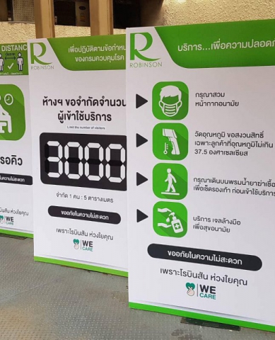 ผู้คนแห่เข้าไปใช้บริการในห้างสรรพสินค้าของไทยอย่างคึกคัก มีภาพการเตรียมความพร้อมของพนักงาน เพื่อคัดกรองผู้ที่จะเข้าไปในห้างฯ ผู้คนจำนวนมากปฎิบัติตามมาตรการเว้นระยะห่าง และสวมหน้ากาก เพื่อป้องกันการแพร่ระบาดของเชื้อโควิด – 19