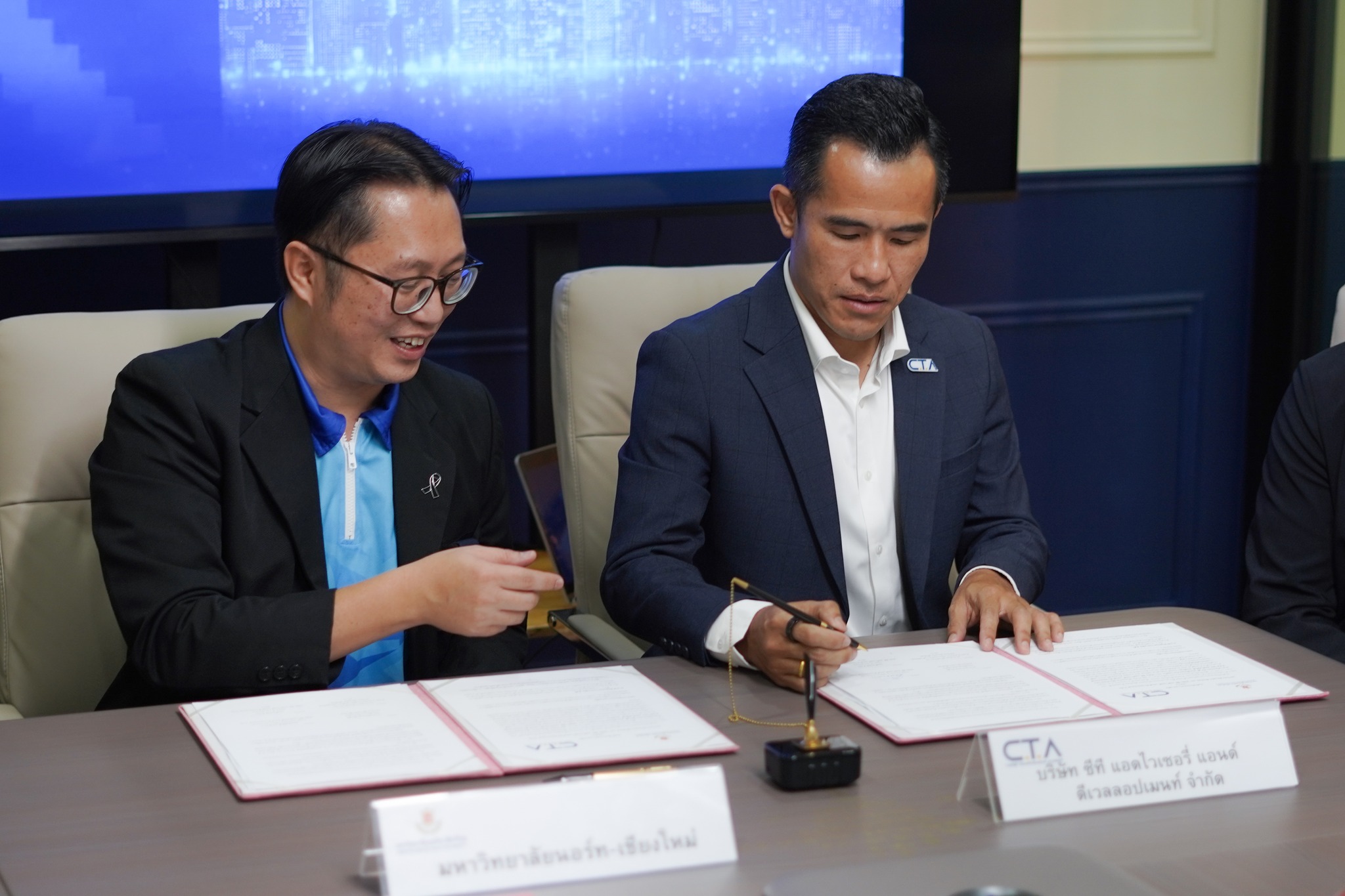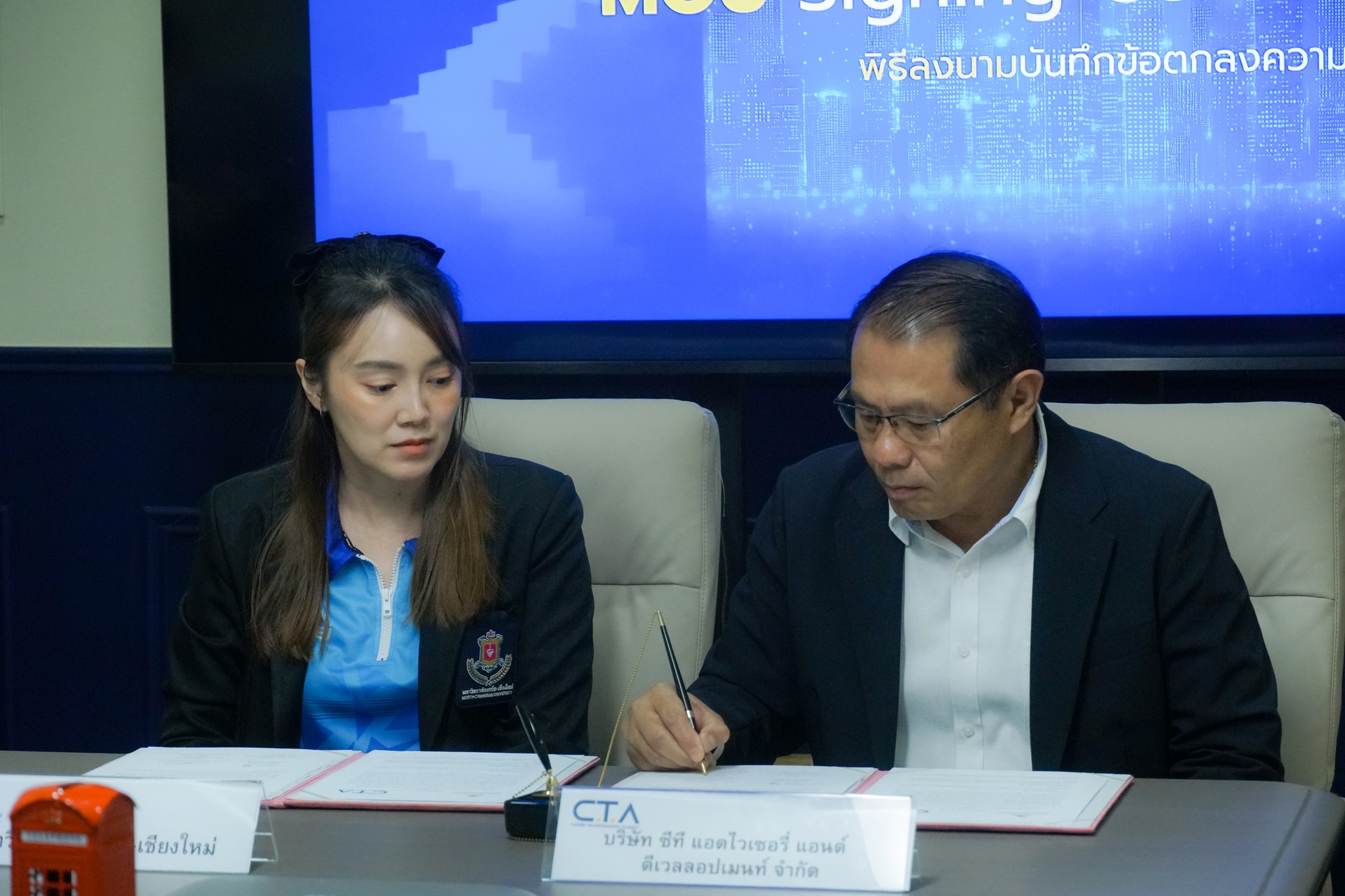 พิธีลงนามจัดขึ้นเมื่อวันที่ 8 เมษายน 2569 โดยมี อาจารย์อรรณพ ชัยวุฒิ คณบดีคณะบริหารธุรกิจ และ คุณพันธ์ศักดิ์ พรมอินถา Chief Executive Officer & Founder บริษัท ซีที แอดไวเซอร์รี่ฯ ร่วมเป็นผู้ลงนาม
