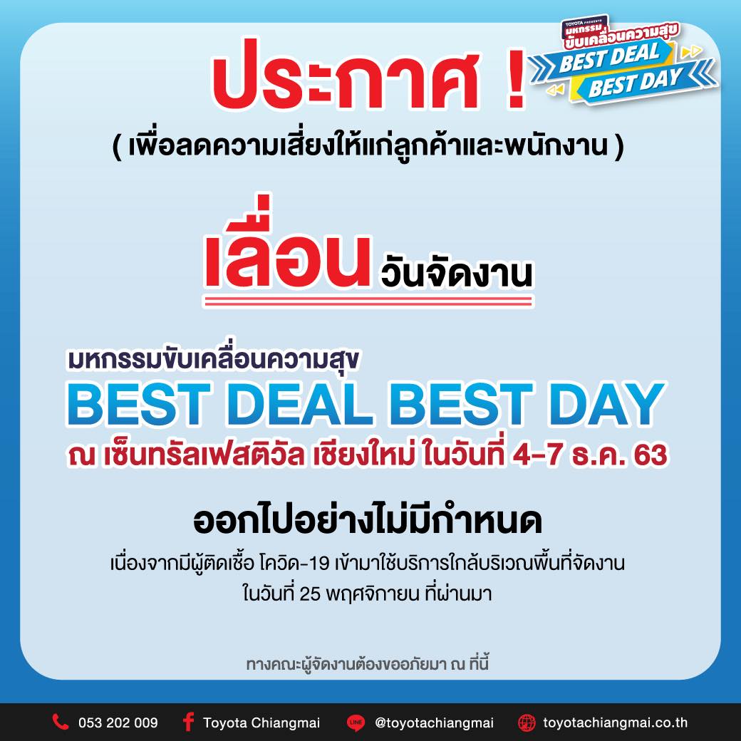 📍จึงของดการจัดกิจกรรม มหกรรมขับเคลื่อนความสุข BEST DEAL BEST DAY ในวันที่ 4-7 ธันวาคม 63
