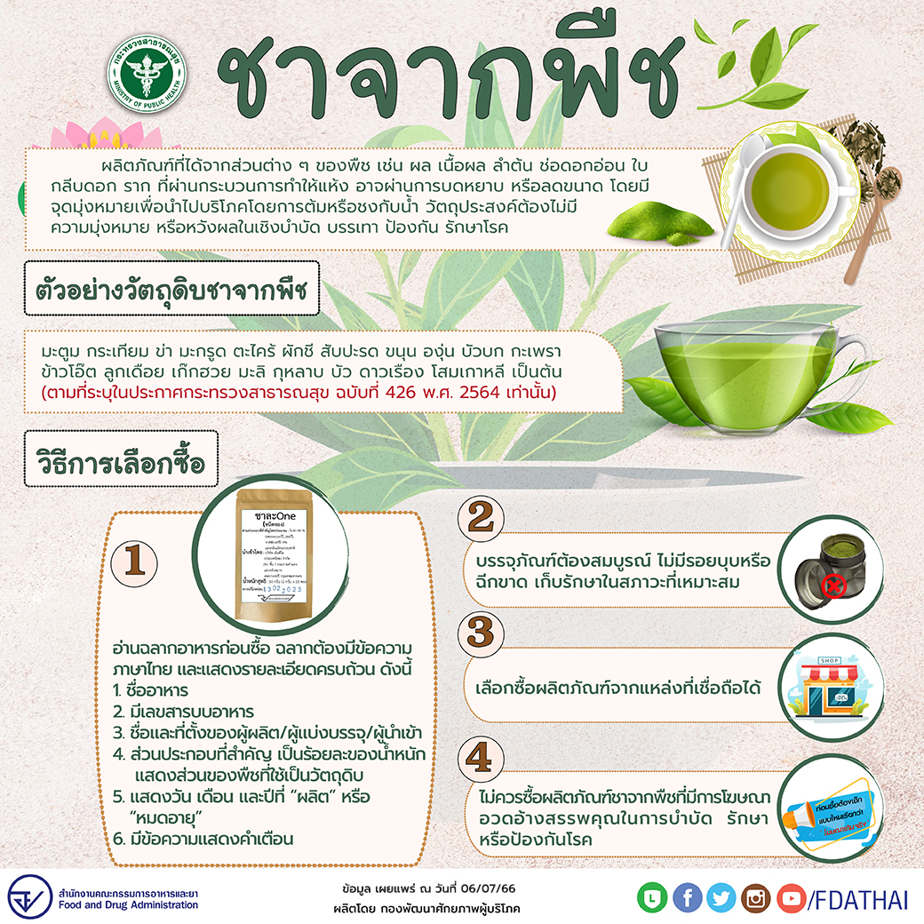 ปัจจุบันมีการนำพืชผัก ผลไม้ ดอกไม้หลากหลายชนิดมาทำเป็นชา แล้วชาจากพืชเหล่านี้บริโภคได้หรือไม่ จะมีวิธีเลือกซื้ออย่างไรให้ปลอดภัย มาทำความรู้จัก “ชาจากพืช” เหล่านี้กันเลย #ผลิตภัณฑ์อาหาร #ชา #ชาจากพืช