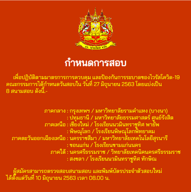 และจะมีการประกาศผลการสอบในวันที่ 3 ก.ค.63 ทาง
