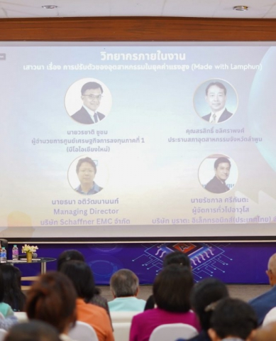 และในวันนี้มีการจัดกิจกรรมเสวนาเรื่อง “การปรับตัวของอุตสาหกรรมในยุคค่าแรงสูง” โดยศูนย์เศรษกิจการลงทุนภาคที่ 1 สำนักงานคณะกรรมการส่งเสริมการลงทุน เชียงใหม่ ผู้แทนจากบริษัท Schaffner EMC จำกัด ผู้แทนจากบริษัท Murata Electronics (Thailand) จำกัด ประธานสภาอุตสาหกรรมจังหวัดลำพูน พร้อมทั้งกิจกรรมจับคู่ธุรกิจ Business Matching ระหว่าง SME กับ ผู้ประกอบการรายใหญ่