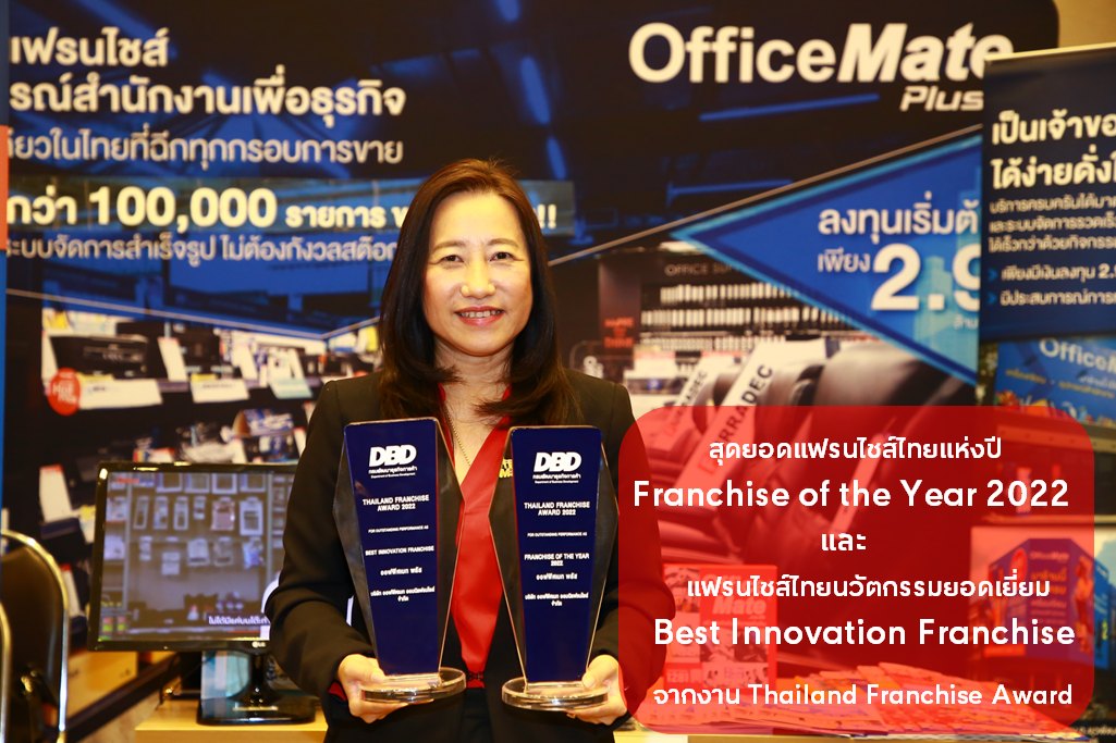 ออฟฟิศเมท พลัส ในเครือเซ็นทรัล รีเทล แฟรนไชส์ร้านอุปกรณ์สำนักงานเพื่อธุรกิจ ขึ้นแท่นแฟรนไชส์น่าลงทุนอันดับหนึ่งในไทย #การันตีคุณภาพและความนิยม คว้ารางวัลสุดยอดแฟรนไชส์ไทยแห่งปี “Franchise of the Year 2022” และรางวัลแฟรนไชส์ไทยนวัตกรรมยอดเยี่ยม“Best Innovation Franchise” จากงาน Thailand Franchise Award ซึ่งจัดโดยกรมพัฒนาธุรกิจการค้า กระทรวงพาณิชย์