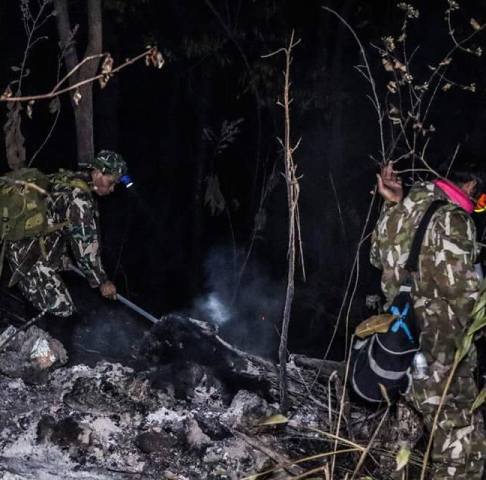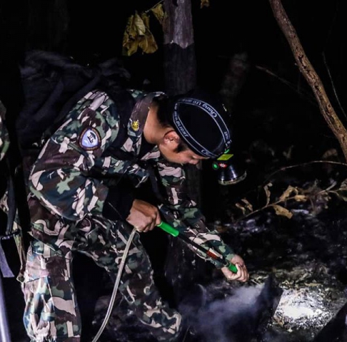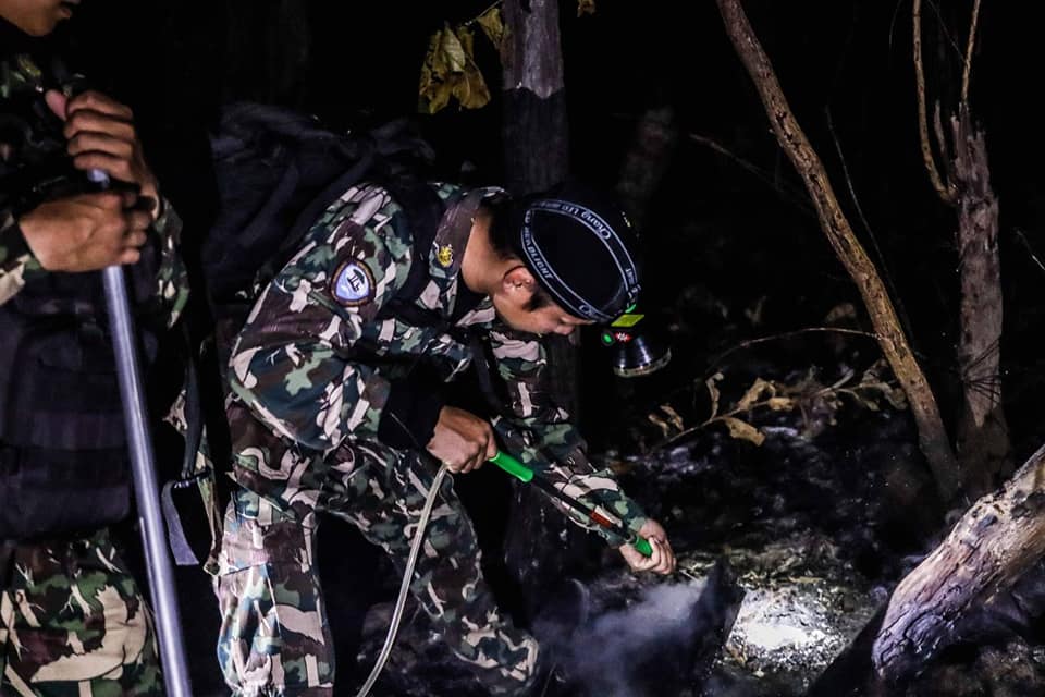 📌 เจ้าหน้าที่อุทยานดอยสุเทพ-ปุย เชียงใหม่ และชุดเสือไฟ ของกรมอุทยานฯ เดินลาดตระเวนออกทำลายตอไม้ที่ติดไฟในพื้นที่เคยถูกไหม้ไปแล้วในเขตอุทยานดอยสุเทพ-ปุย