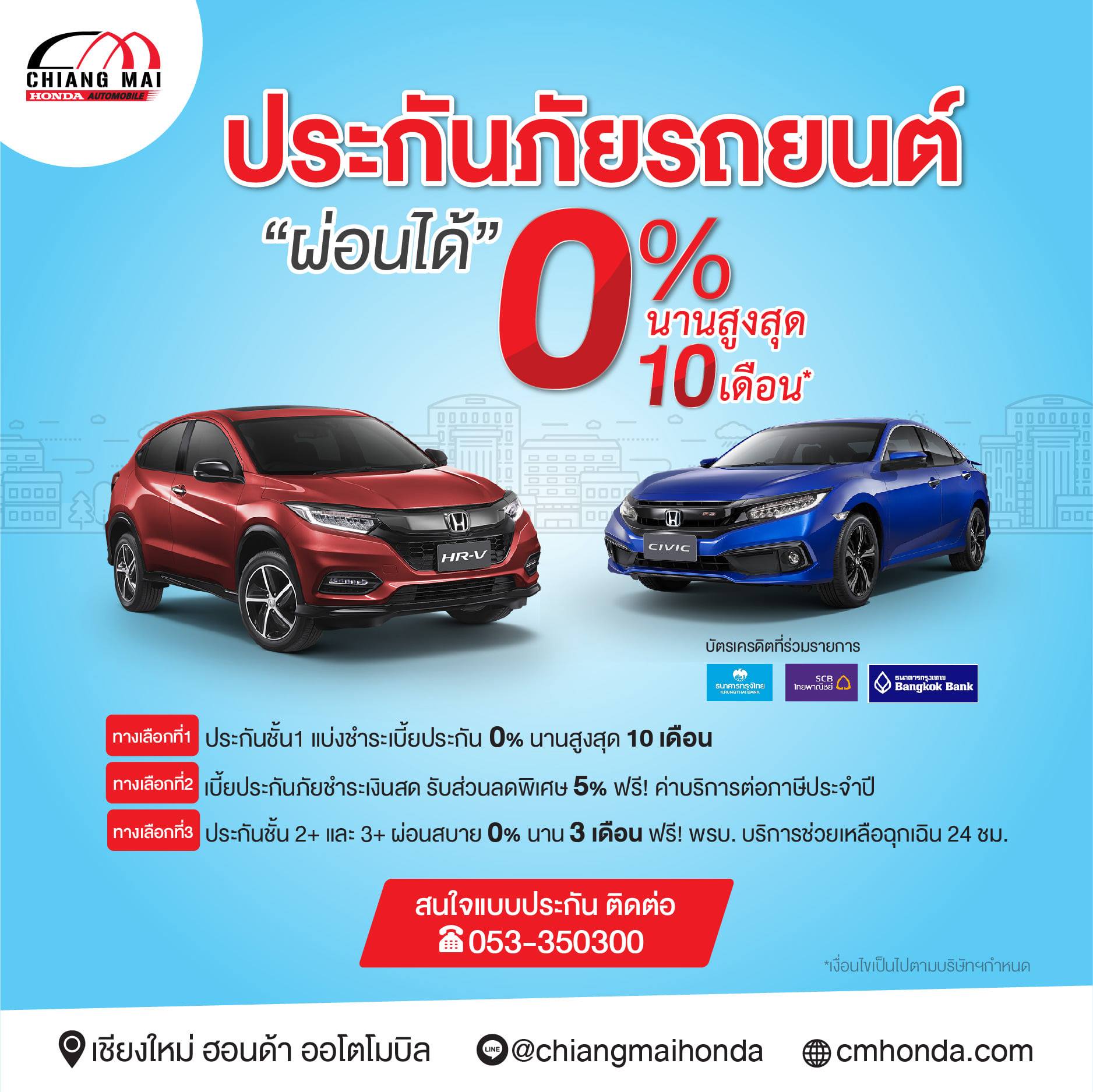 เริ่มต้น 7,XXX บาท เบี้ยถูก 💳ผ่อนสบาย 0% นาน 3 เดือน รับโปรโมชั่นอีกเพียบ** ฟรี พ.ร.บ. บริการช่วยเหลือฉุกเฉิน 24ชม. ไม่มีค่าเสียหายส่วนแรก ใช้ได้รถยนต์ฮอนด้าทุกรุ่น