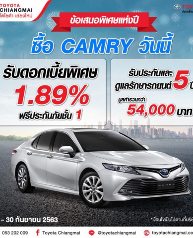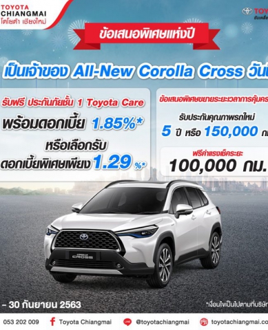 ✅ สำหรับลูกค้าที่จองรถยนต์โตโยต้าทุกรุ่น ที่โชว์รูมโตโยต้า เชียงใหม่ ทั้ง 7 สาขา ตั้งแต่วันที่ 4 กันยายน – 11 ตุลาคม 2563 มีสิทธิ์ลุ้นรับ Voucher จำนวน 20 รางวัล มูลค่ารวม 100,000 บาท