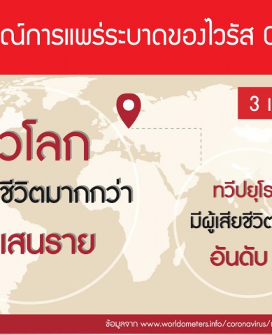 3 เดือนที่ผ่านมา..ทั่วโลกเผชิญกับโรคCOVID-19 หรือโรคอุบัติใหม่ พบผู้เสียชีวิตมากกว่า 1 แสนราย และทวีปยุโรปมีผู้เสียชีวิตมากเป็นอันดับหนึ่ง 🚩