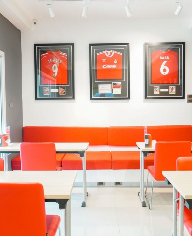 . ภายในร้านมี 2 ชั้น เป็นห้องแอร์เย็นฉ่ำ จิบกาแฟไป เดินชมของสะสมไป ยิ่งถ้าคุณเป็นแฟนบอลลิเวอร์พูลยิ่งฟินครับ